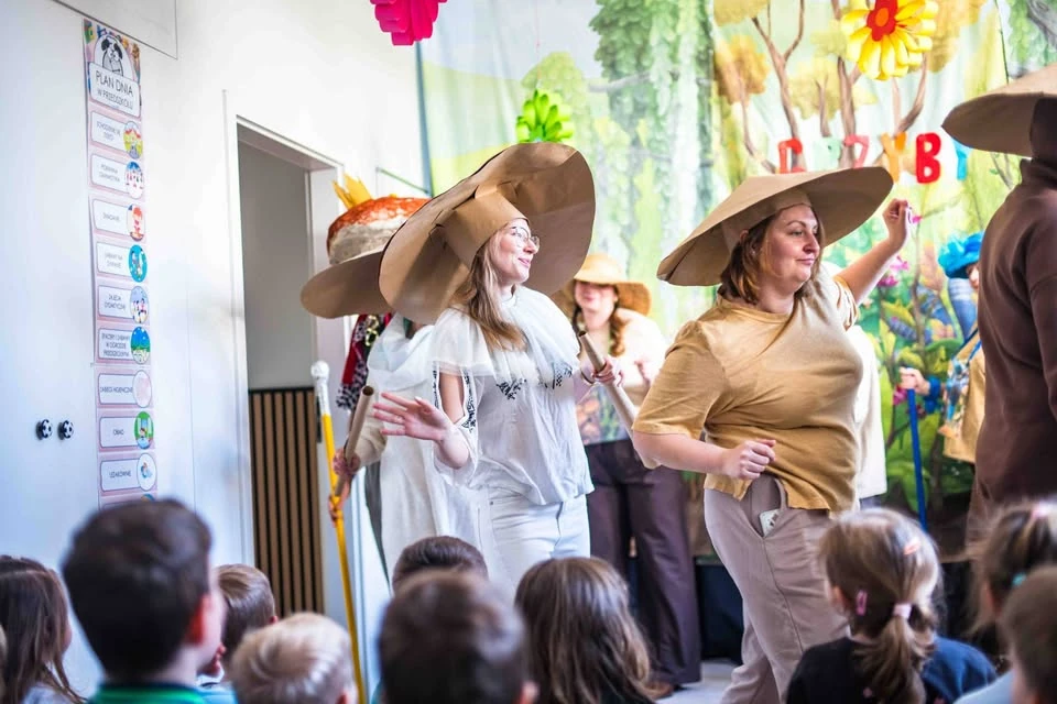 Obchody Dnia Teatru w naszym przedszkolu to zawsze wyjątkowy czas, a w tym roku na scenie zagościł klasyk: Jan Brzechwa Grzyby. To ten niezwykły moment, w którym nasza kadra zamienia się w prawdziwych aktorów, aby sprawić radość najmłodszym podopiecznym.