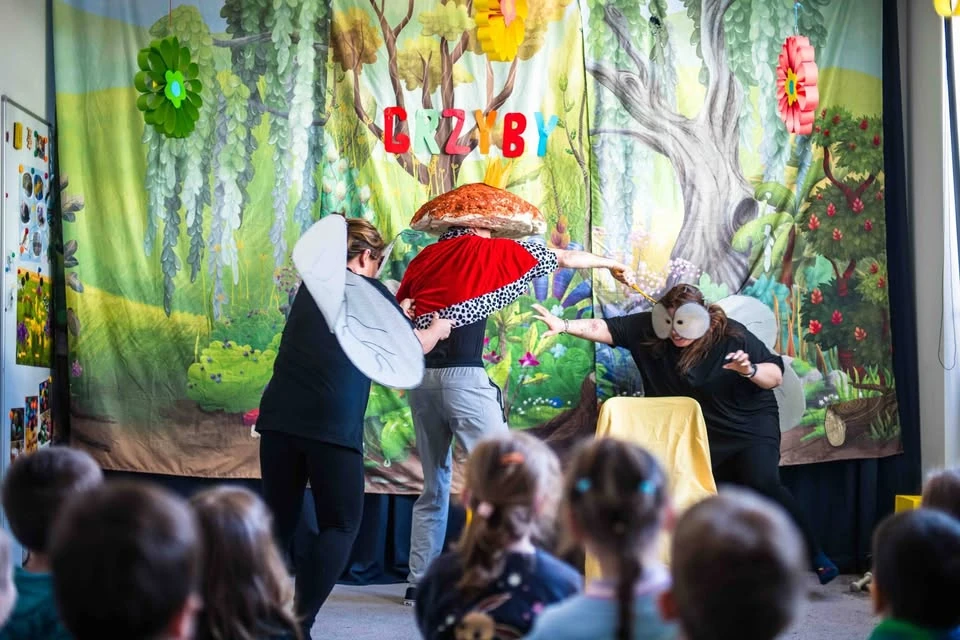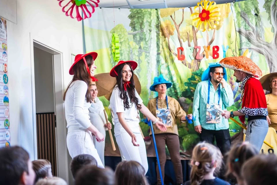 Wybór repertuaru nie był przypadkowy. Wiersz, czyli znany wszystkim Jan Brzechwa Grzyby, okazał się absolutnym strzałem w dziesiątkę. Dynamiczna akcja i zabawne dialogi sprawiły, że zarówno mali widzowie, jak i sami aktorzy bawili się wyśmienicie. Śmiechom i brawom nie było końca, co jest dla naszej kadry największą nagrodą za włożony trud.