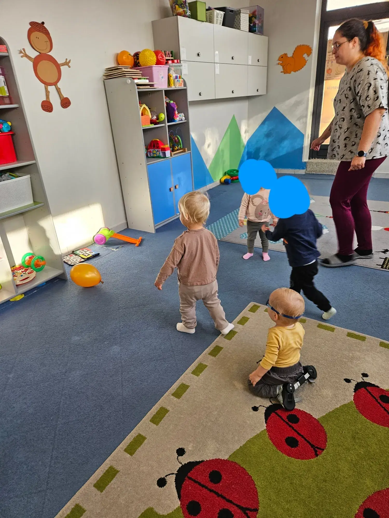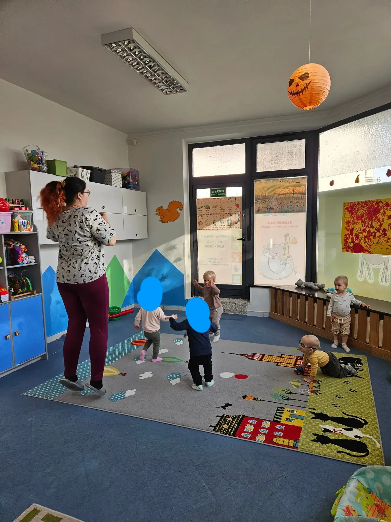 Po lekturze przyszedł czas na ruch! Dzieci wyruszyły w pełną wyzwań podróż do zamku olbrzyma, towarzysząc Kotu w butach. Takie ciekawe zajęcia w żłobku to świetna okazja do wspierania rozwoju motorycznego. Na drodze maluszków stanęły liczne przeszkody – dzieci dzielnie skakały przez kałuże i uczyły się trzymać równowagę, chodząc po wąskich kładkach. Każdy krok był treningiem sprawności i dawał dzieciom mnóstwo satysfakcji.