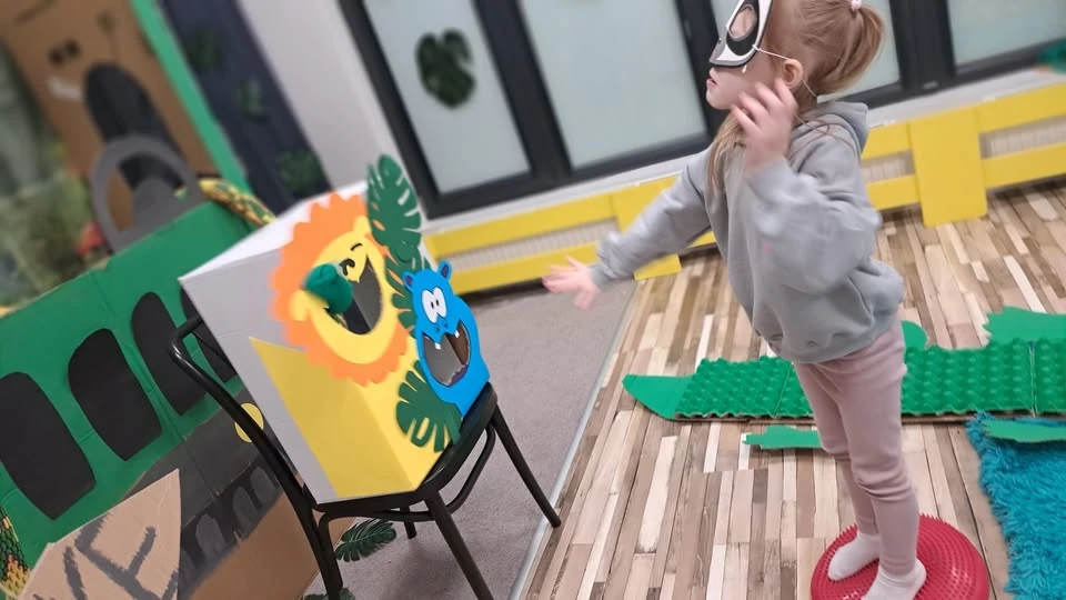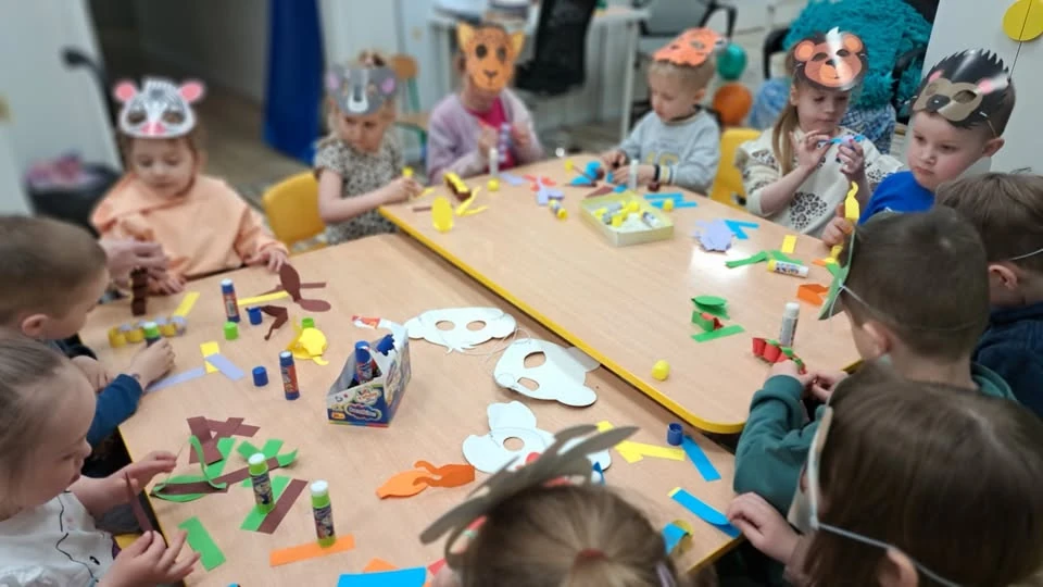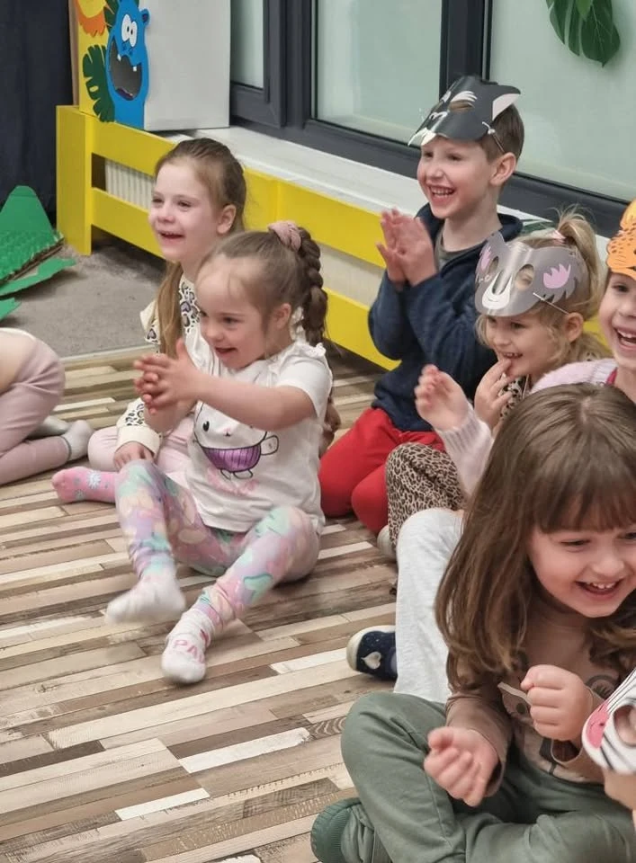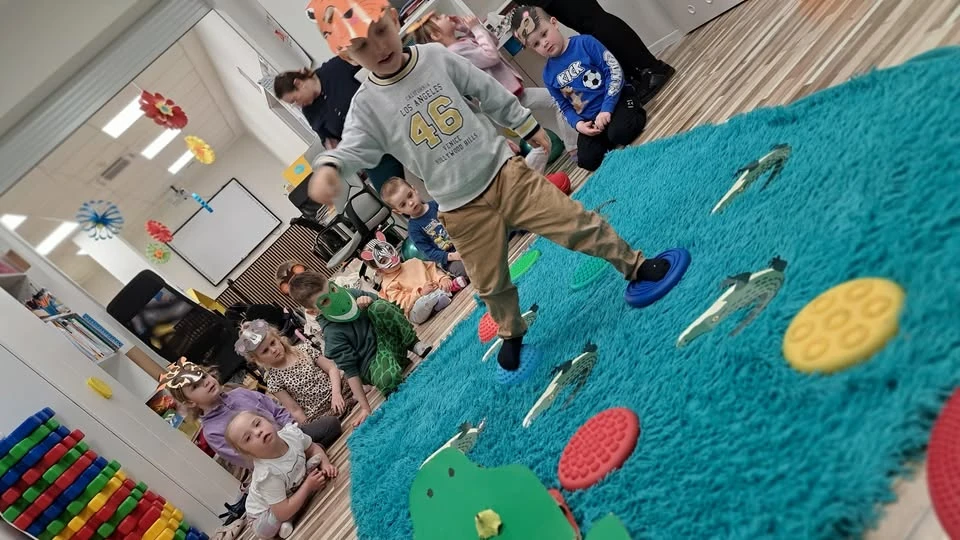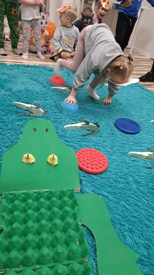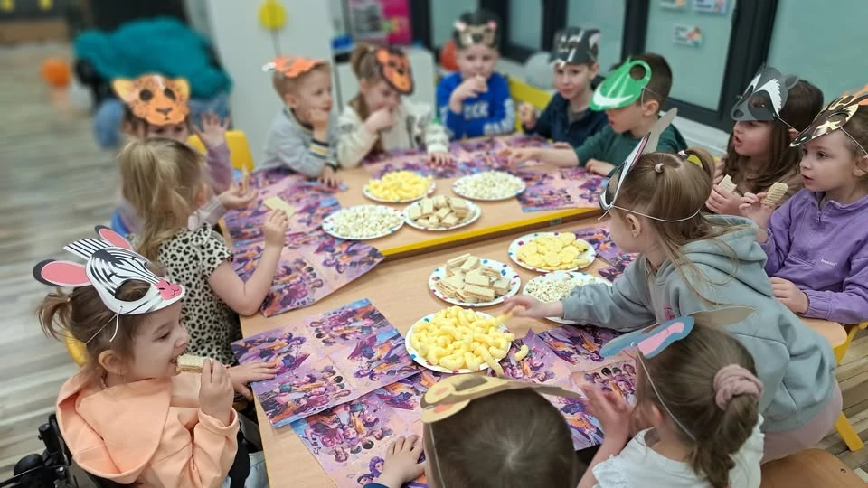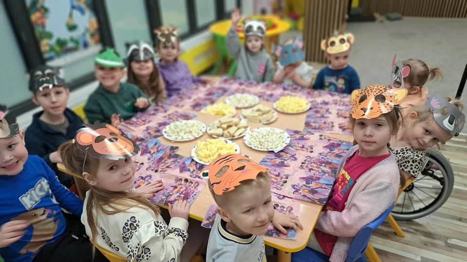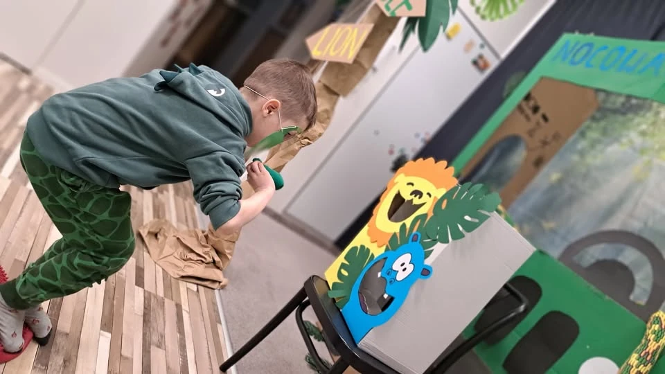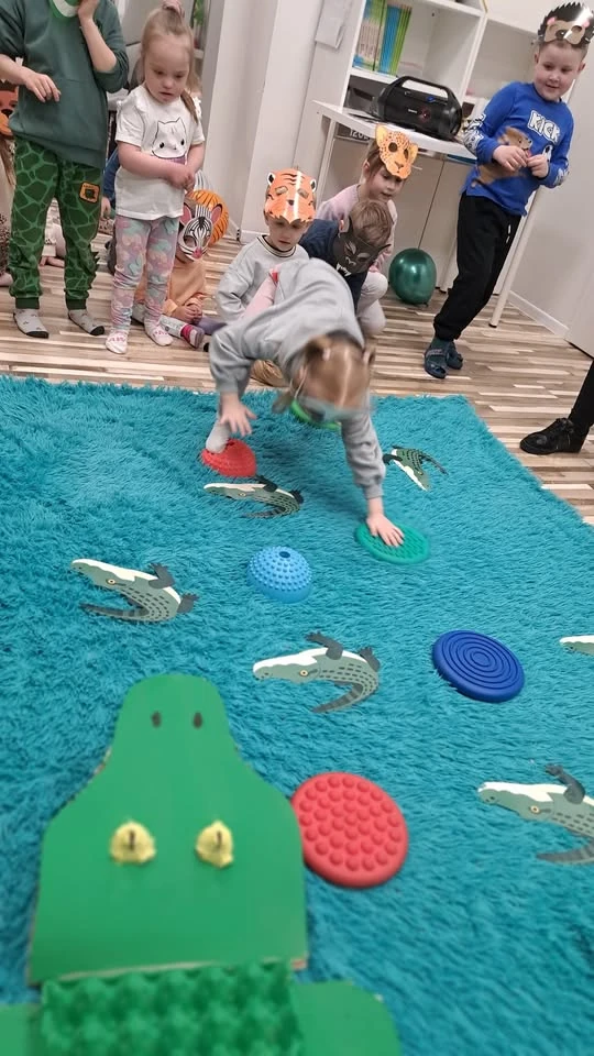 Na czas tego wyjątkowego wieczoru nasze sale zamieniły się w gęstą dżunglę, a dzieci przeobraziły się w radosne, dzikie zwierzęta. Mali odkrywcy z wielkim zaangażowaniem pokonywali przygotowane tory przeszkód, wykazując się zwinnością i odwagą.