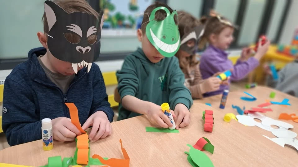 Podczas nocnych warsztatów Liski i Jeżyki stworzyły przepiękne, kolorowe węże. Te własnoręcznie wykonane prace plastyczne stały się wspaniałą pamiątką, którą dzieci z dumą zabrały rano do swoich domów.