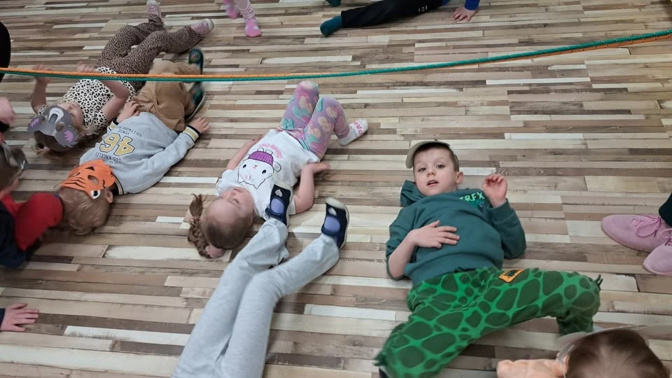 Gdy emocje po dżunglowych wyprawach nieco opadły, przyszedł czas na zasłużony odpoczynek. Wieczór zwieńczył wspólny seans kinowy, podczas którego przedszkolaki w przytulnej atmosferze mogły obejrzeć ulubione bajki.