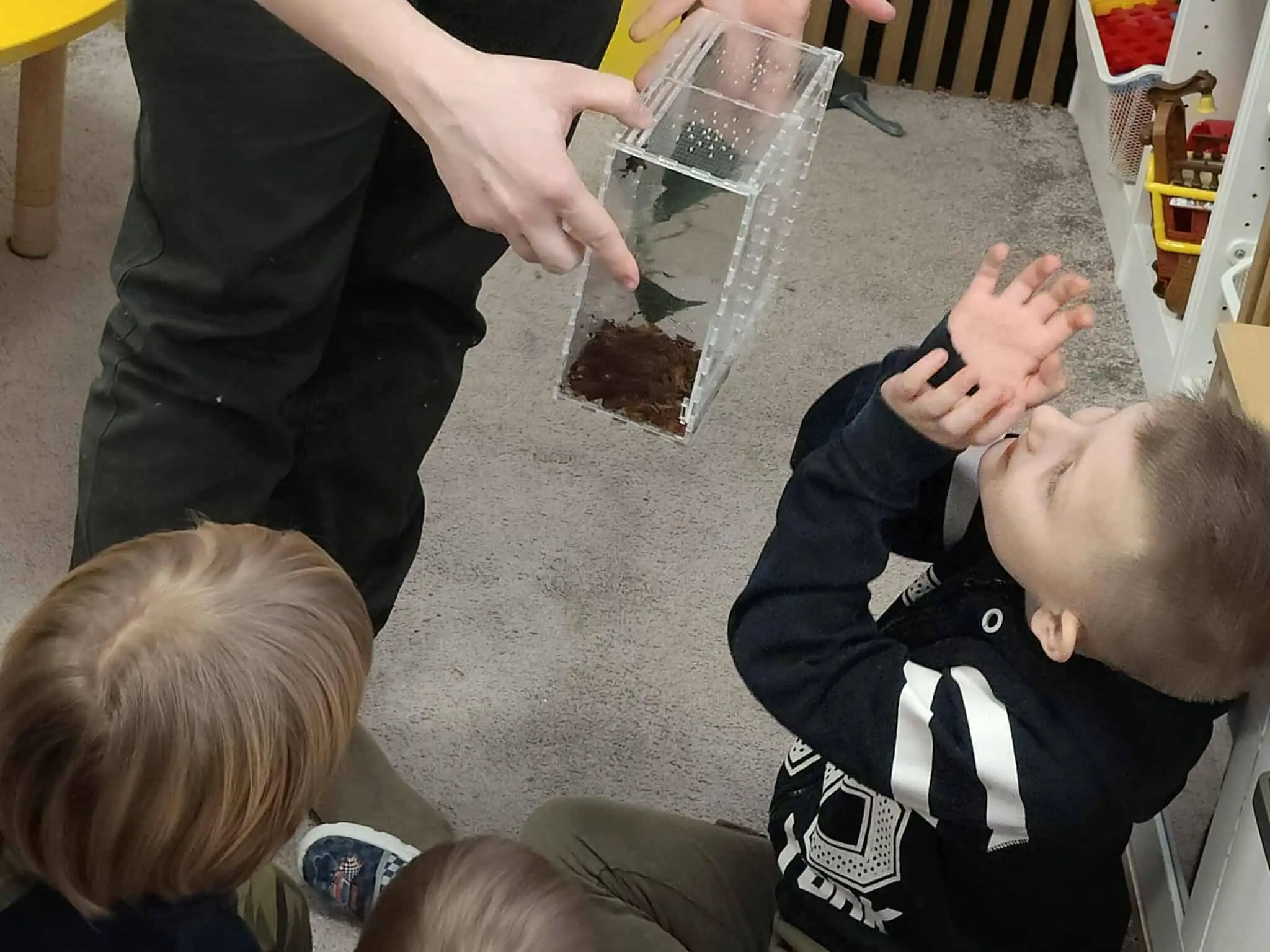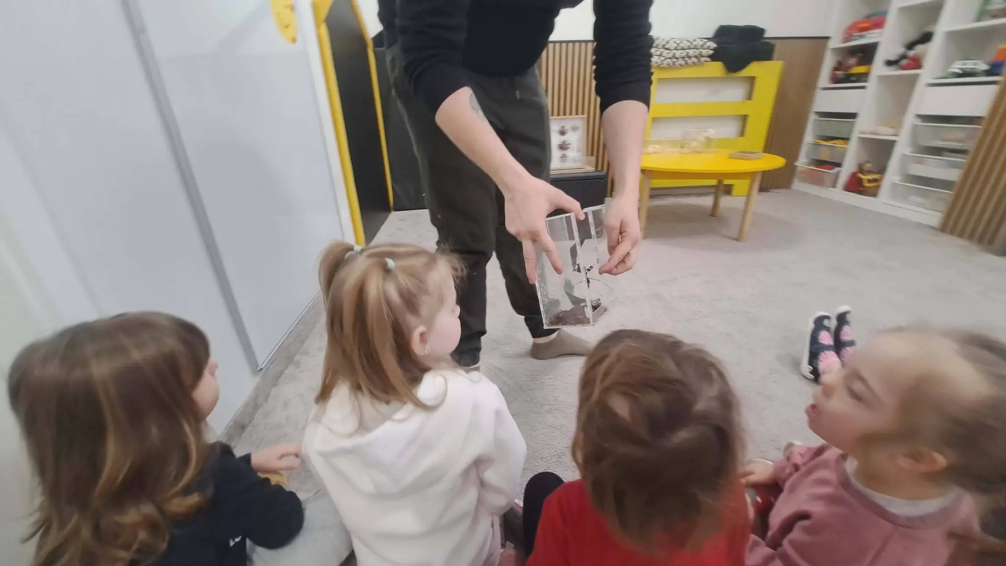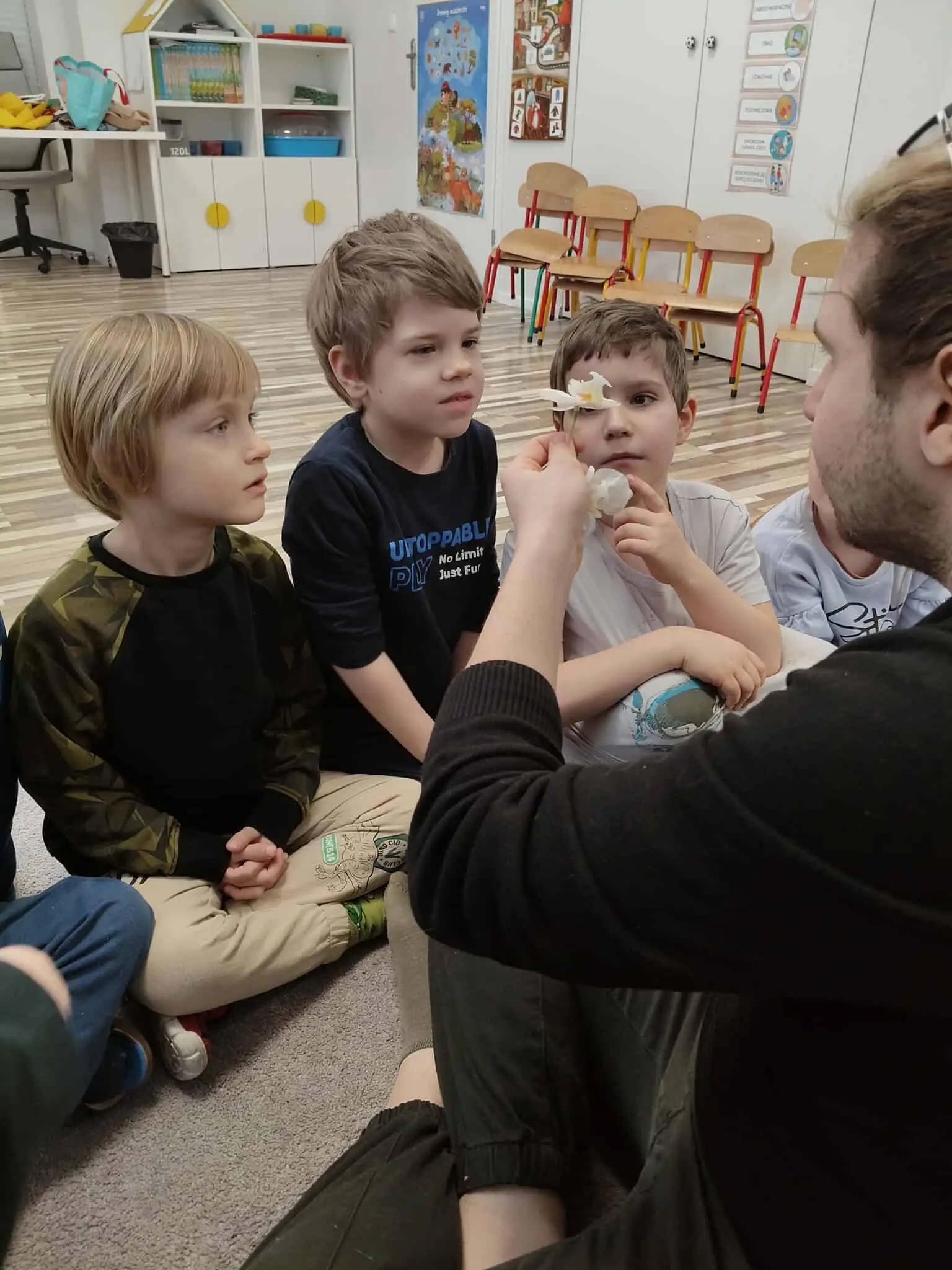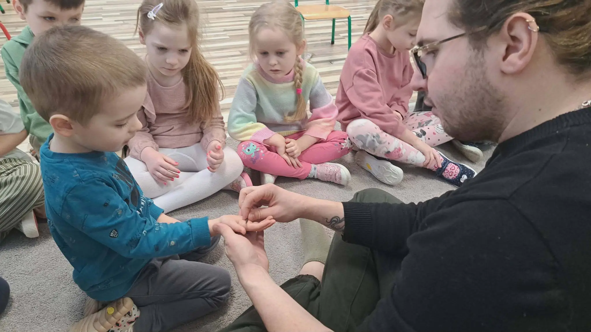 Podczas zajęć każdy chętny przedszkolak miał wyjątkową okazję, aby wziąć owada na ręce i przyjrzeć mu się z bliskiej odległości. Bezpośredni kontakt z naturą to najlepszy sposób na przełamywanie barier i budowanie empatii wobec wszystkich żywych stworzeń.