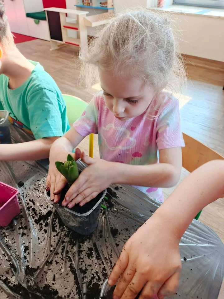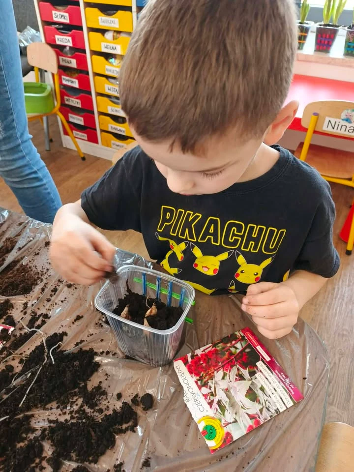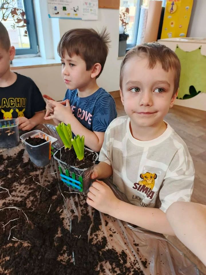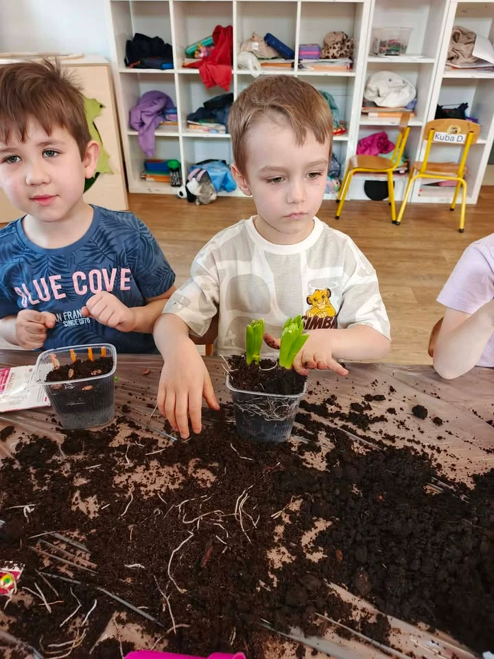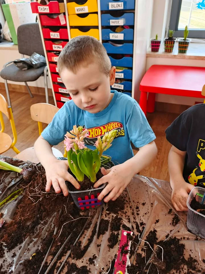 Podczas ostatnich zajęć nasze przedszkolaki zamieniły się w prawdziwych miłośników przyrody. Żabki z ogromnym zaangażowaniem zajmowały się drobnymi pracami ogrodniczymi. Głównym punktem dnia było wspólne sadzenie kwiatów, co dało maluchom mnóstwo satysfakcji. Taka praktyczna wiosna w przedszkolu to wspaniała okazja, aby uczyć najmłodszych szacunku do natury oraz odpowiedzialności za żywe rośliny.