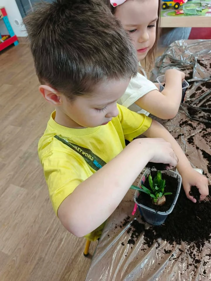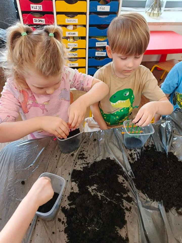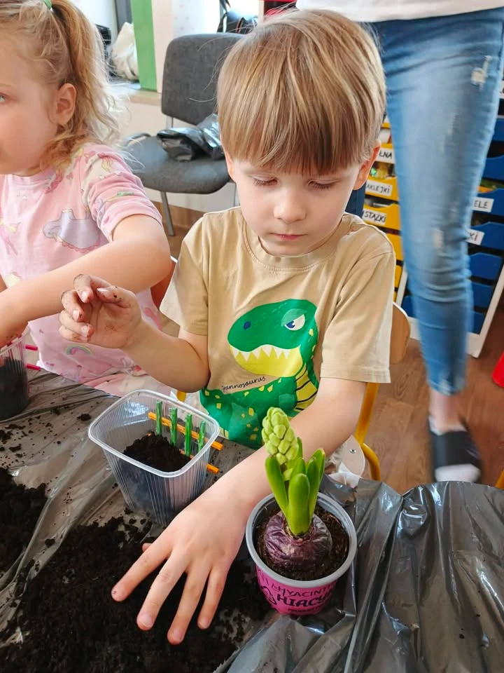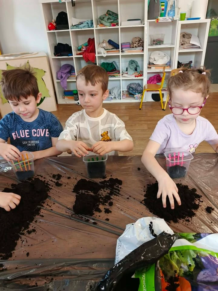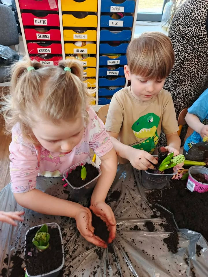 Podczas ostatnich zajęć nasze przedszkolaki zamieniły się w prawdziwych miłośników przyrody. Żabki z ogromnym zaangażowaniem zajmowały się drobnymi pracami ogrodniczymi. Głównym punktem dnia było wspólne sadzenie kwiatów, co dało maluchom mnóstwo satysfakcji. Taka praktyczna wiosna w przedszkolu to wspaniała okazja, aby uczyć najmłodszych szacunku do natury oraz odpowiedzialności za żywe rośliny.