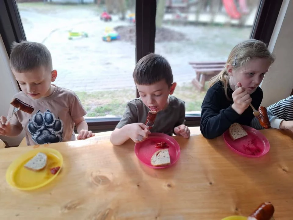 Niezwykle ważnym punktem wyjazdu był wspólny poczęstunek. Każda wycieczka do Chatka Spełnionych Marzeń to także doskonała okazja do zjedzenia ciepłego posiłku na łonie natury. Na dzieci czekała pyszna kiełbasa z grilla, która po intensywnej zabawie smakowała wybornie.